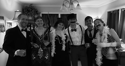 Capture the memories as you and your friends pose in front of the custom backdrops of a Great Gatsby scene.